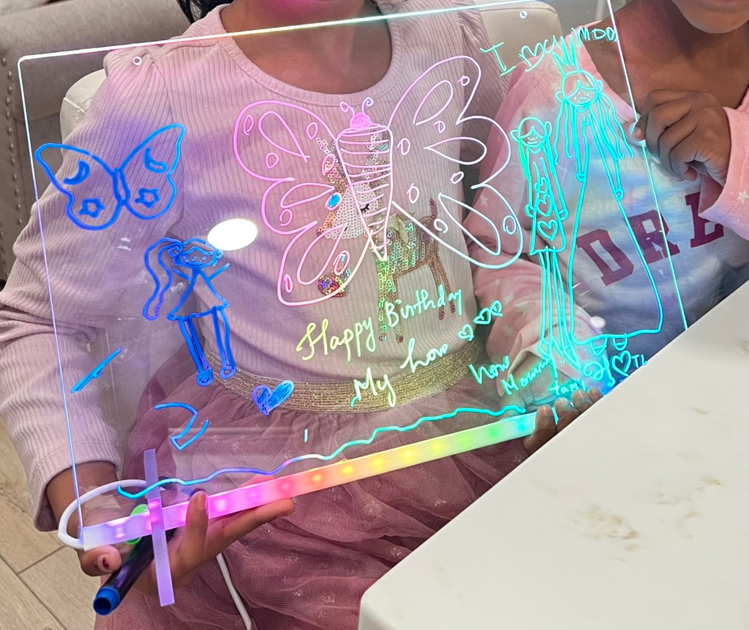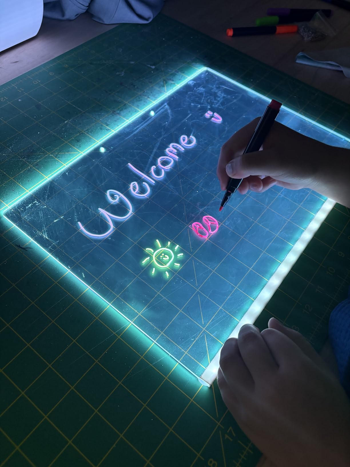 Blank paper can be intimidating for young learners. The Lumi-Canvas Surface transforms every mistake into a satisfying "wipe-clean" moment, removing the fear of failure. This specialized acrylic interface is designed to amplify color and contrast, making even simple doodles look like professional neon signs. This immediate visual reward reinforces positive neural pathways associated with writing and drawing. Watch their self-esteem glow as bright as their artwork.